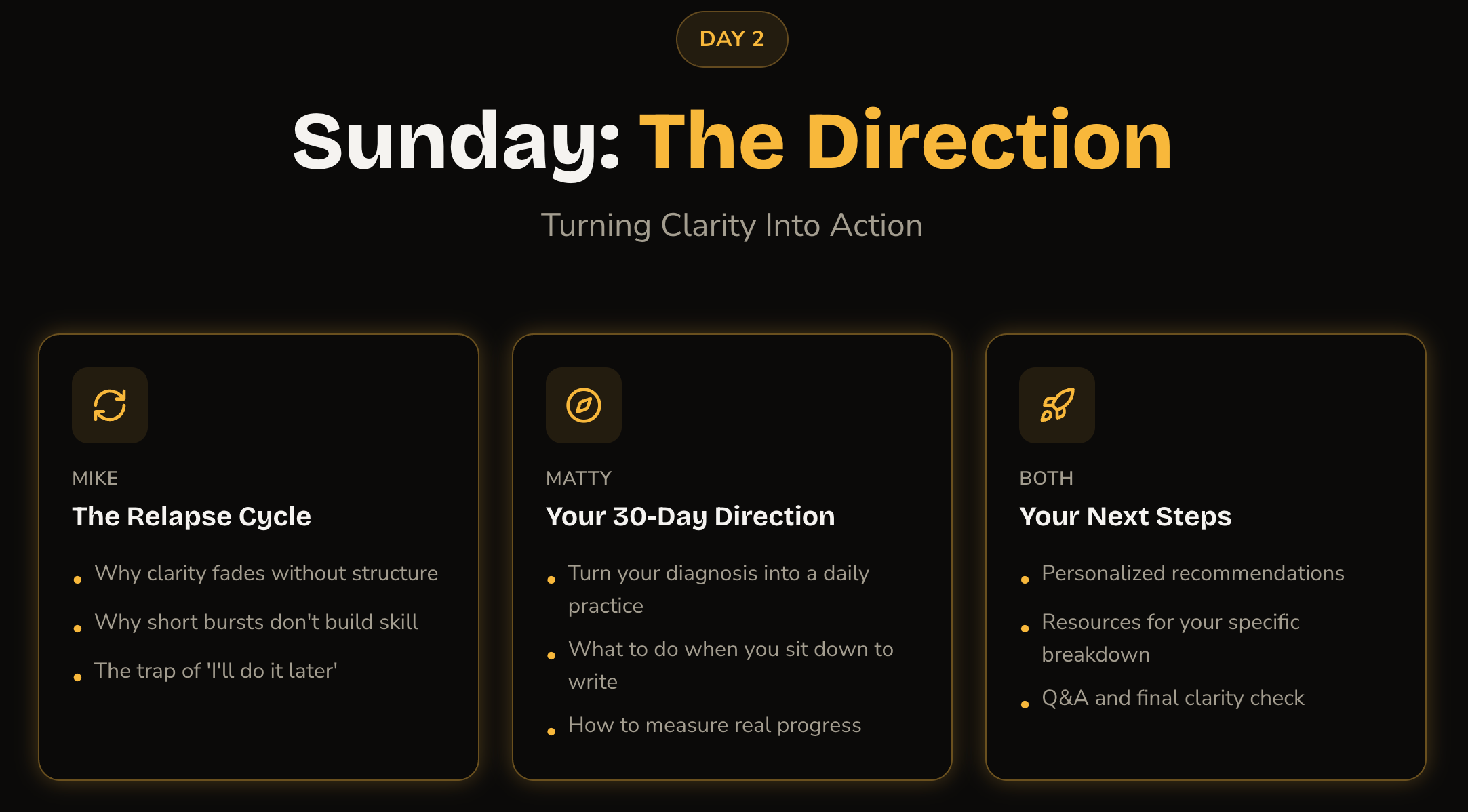 - Bonus Session with Matty & Mike after Day 2