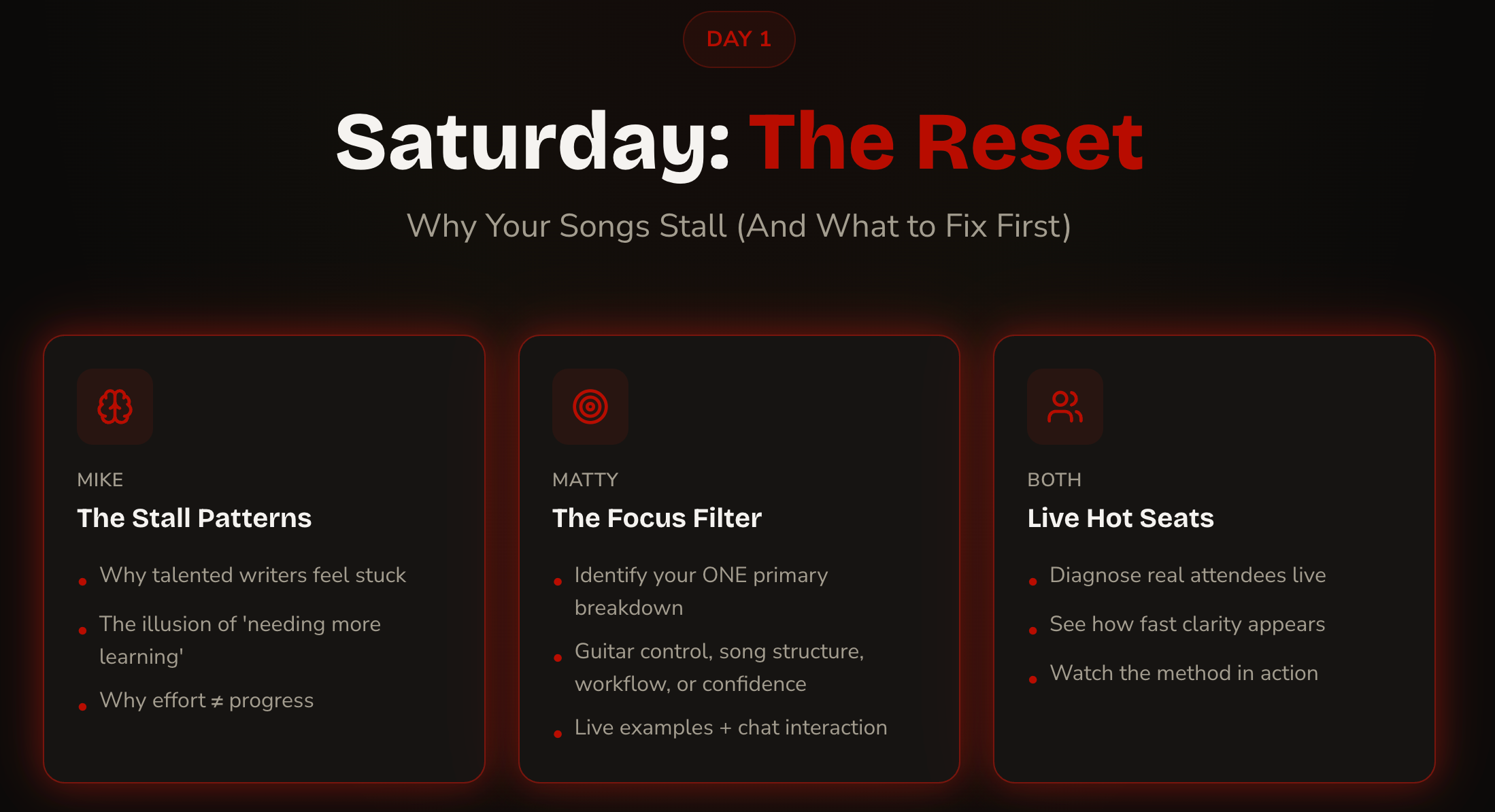 - Bonus Session with Matty & Mike after Day 1